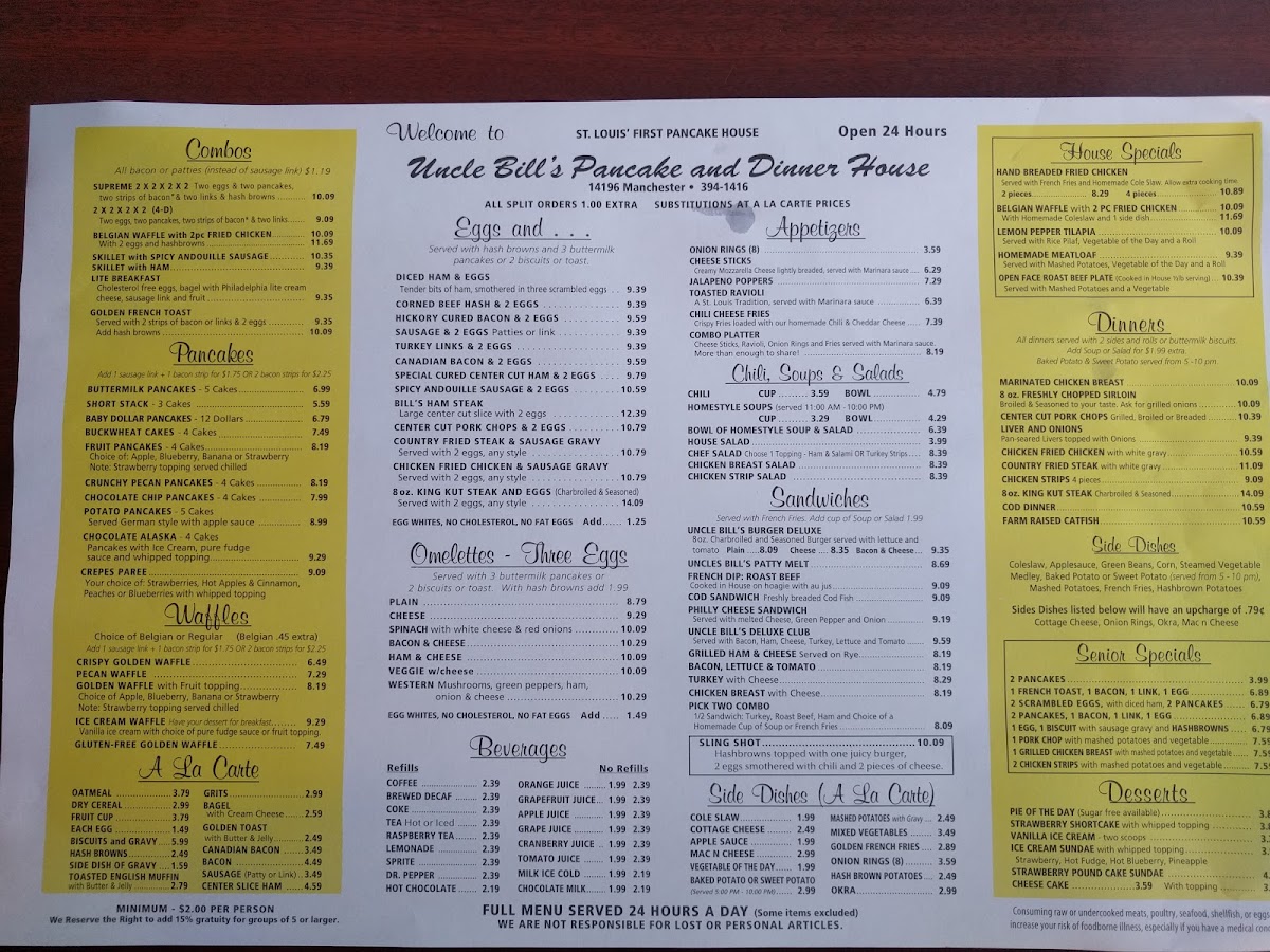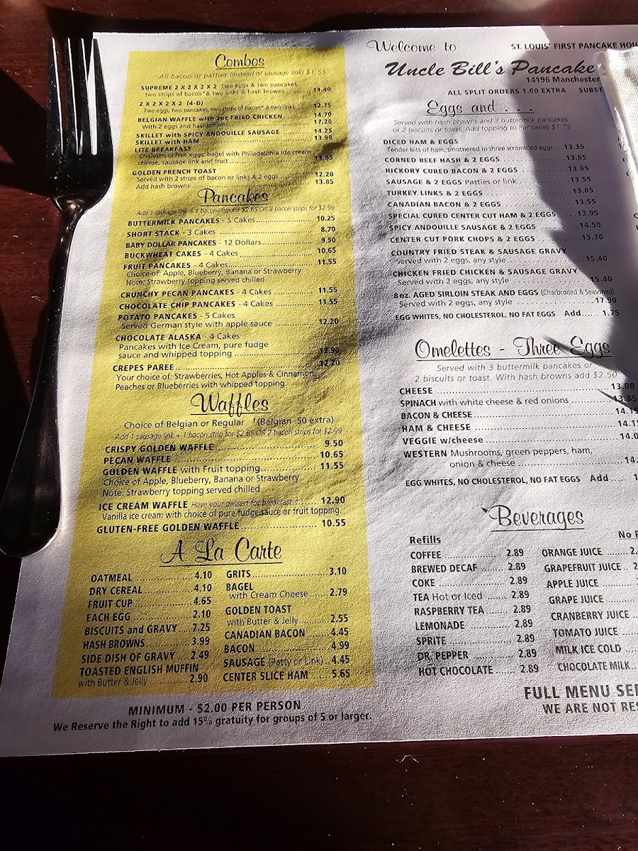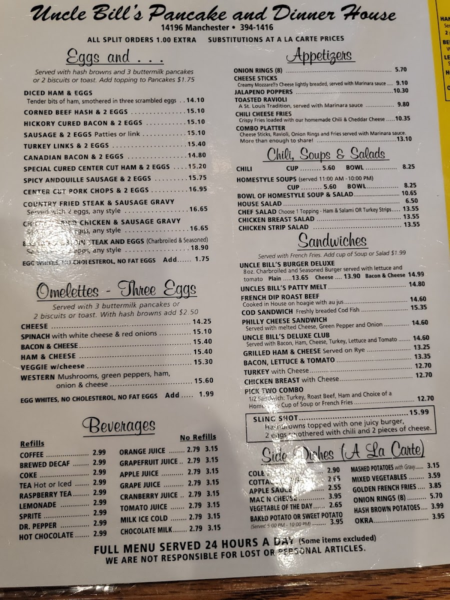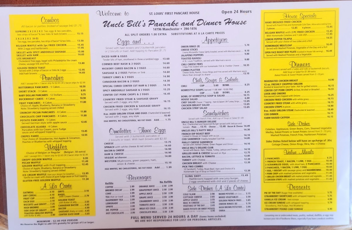 West County Uncle Bill's Pancake and Dinner House offers a straightforward, comforting menu that feels right at home in a cozy, old-school setting. Whether you’re stopping by for a hearty breakfast or a satisfying dinner, you’ll find familiar favorites served throughout the day.